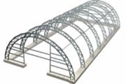 Арочный ангар — это один из распространенных видов быстровозводимых ангаров. В конструкции арочного ангара главную роль несет в себе арка, радиус которой определяет заказчик, равно как и количество таких рамок. От количества арок зависит длина возводимого ангара. Арочный ангар популярен во многих сферах деятельности, например, в торговле, производстве и других видах деятельности за счет легкой и быстрой сборки. По желанию заказчика, арочный ангар может быть выполнен с утеплением или без него, в зависимости от необходимых условий эксплуатации ангара. Подобные ангары могут использоваться под хранение различной техники, то есть как гараж, также удобен в сельском хозяйстве и фермах. Компания «Мисеон» предлагает строительство арочных ангаров с покрытием проф. листом и несущим металлокаркасом, а также осуществляет ихдоставку и монтаж. ЭЛЕМЕНТЫ КОНСТРУКЦИИ АРОЧНОГО АНГАРАЦена арочного ангара зависит от его комплектации. Стандартный комплект поставки арочного ангара включает в себя: несущий металлокаркас, металлические связи, стойки, прогоны из бруса, внешнюю обшивку из оцинкованного проф. листа, метизы и два комплекта распашных ворот.В состав утеплённой конструкции входят ещё утеплитель из стеклянного штапельного волокна 100 мм. и внутренняя обшивка из оргалита, гладкого оцинкованного листа или из оцинкованного проф. листа.